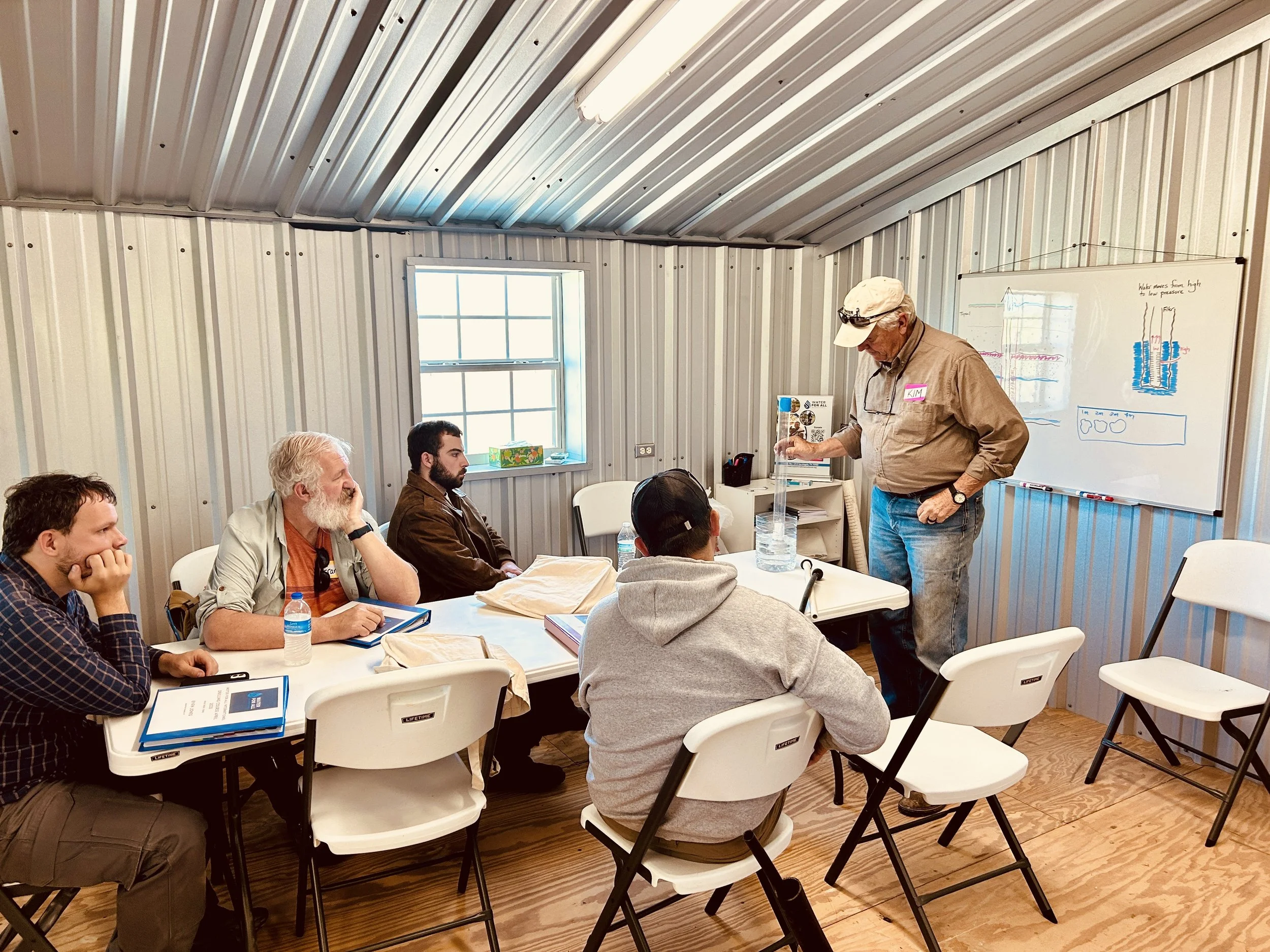 The course begins after lunch (which is provided). An introductory ‘chalk talk’ provides an overall view of the drilling process, the tools, how pumps work, and instructions as to beginning the process, etc.